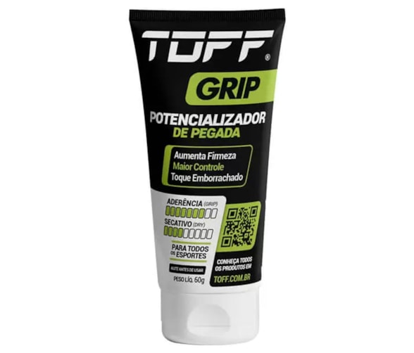 Toff Grip Gel Potencializador de Pegada 60g - TOFF GRIP GEL foi especificamente desenvolvido para ser utilizado como um agente potencializador de pegada - Os componentes utilizados na formulação elevam o nível de aderência entre as mãos e a área de contato dos objetos esportivos, gerando ao atleta maior firmeza, segurança e controle na prática esportiva.