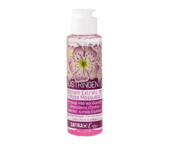 O Tônico Adstringente com Extrato de Rosa Mosqueta da Safira suaviza, tonifica, hidrata, protege, limpa, equilibra e age como um antioxidante na derme. Em sua fórmula você encontra o poderoso extrato de Rosa Mosqueta, uma substância cheia de vitaminas e antioxidantes que trazem propriedades regenerativas para a pele. A Rosa Mosqueta é fonte de vitamina C, caroteno, aminoácidos, sais minerais, ácidos orgânicos, tanino, pectina, mucilagem, o extrato de Rosa Mosqueta possui propriedades que tonificam, tem ação adstringente, refrescante, restauradora e é anti-radiciais livres.