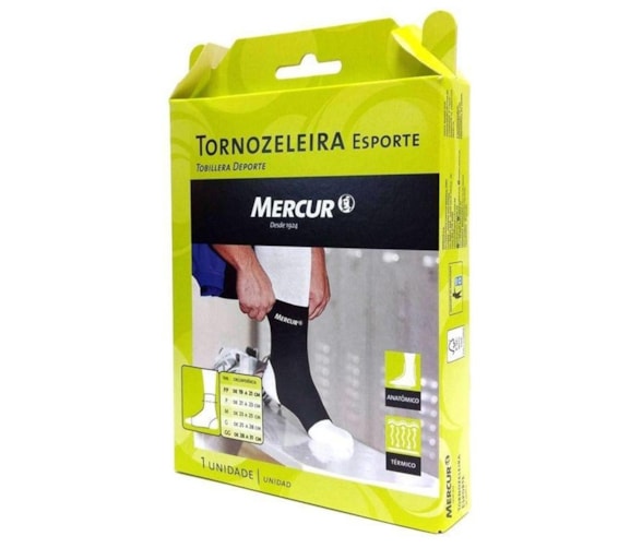 Tem formato anatômico com bordas reforçadas, que proporcionam compressão e resistência adequadas. A tornozeleira é confeccionada em Neoprene®, que retém o calor corporal, auxiliando na redução da dor e prevenção de lesões. Pode ser usada tanto no tornozelo direito quanto no esquerdo.