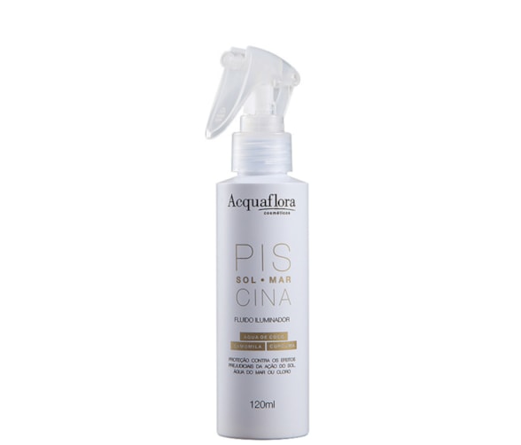 Proporciona luminosidade radiante para os fios, Acquaflora Sol Mar Piscina evidencia os reflexos dos cabelos naturais ou tingidos durante a exposição ao sol.