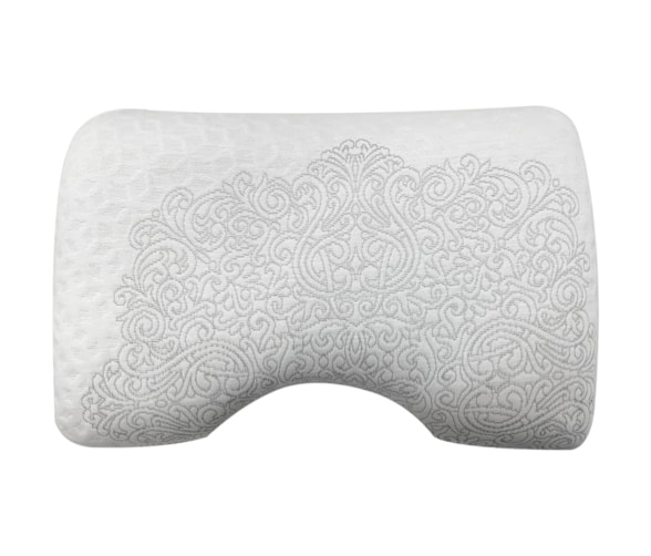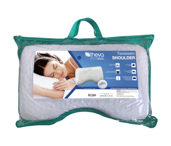 O Travesseiro Shoulder Theva possui formato linear para apoio da cabeça e pescoço de um lado, que favorece o sono em outras posições e do outro lado possui um formato exclusivo para encaixe do ombro, que favorece às pessoas que preferem dormir de lado.
