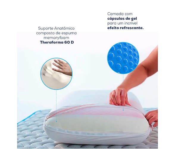 | Preenchimento: | 70% espuma viscoelástica, 30% gel |