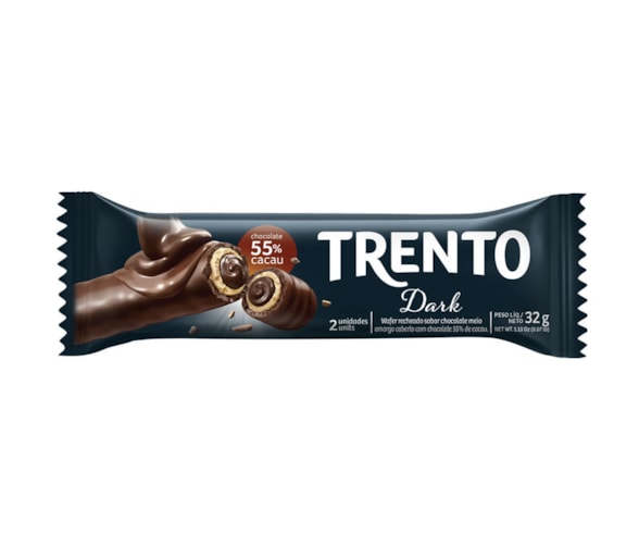 Trento Dark Chocolate Meio Amargo Peccin 32g - Wafer recheado sabor chocolate meio amargo coberto com chocolate 55% de cacau.
