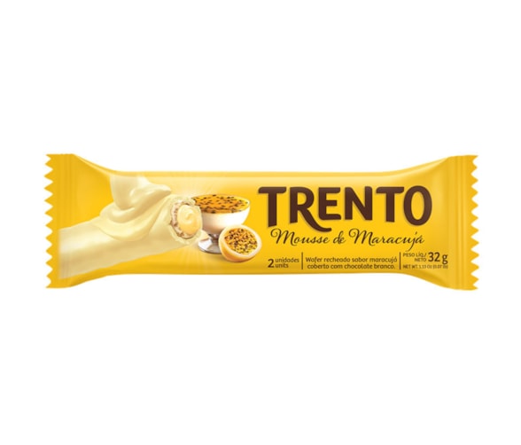 Trento Mousse de Maracujá Peccin 32g - Wafer recheado sabor maracujá coberto com chocolate branco.