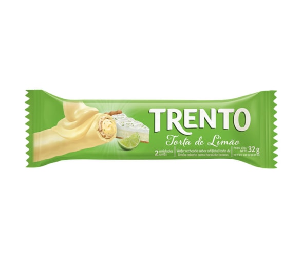 Trento Torta de Limão Peccin 32g - Wafer recheado sabor torta de limão coberto com chocolate branco.