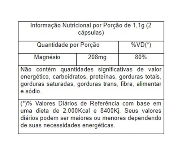 Sujestão de uso: Ingerir 2 (duas) cápsulas ao dia, antes das principais refeições.