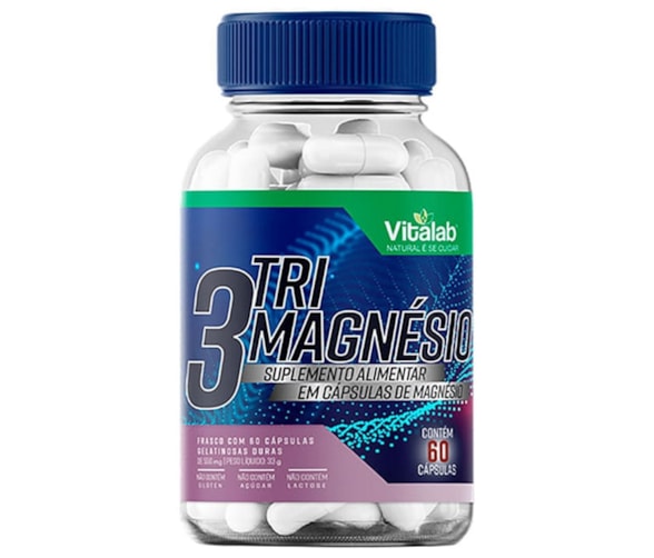 Tri-Magnésio Vitalab - Suplemento alimentar mineral em cápsulas de magnésio da Vitalab - Contém 3 tipos de Magnésio, Cloreto de Magnésio, Malato de Magnésio e Bisglicinato de Magnésio - O magnésio é um sal mineral e está presente na natureza sempre associado a outras moléculas orgânicas ou inorgânicas, como minerais e aminoácidos.