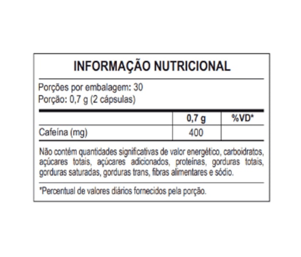 Recomendação de uso: Ingerir de uma a duas cápsulas antes do treino. Não exceder a porção de 2 cápsulas ao dia. Evitar o consumo em até 6 horas antes de dormir Indicado para atletas e praticantes de atividade física maiores de 19 anos.