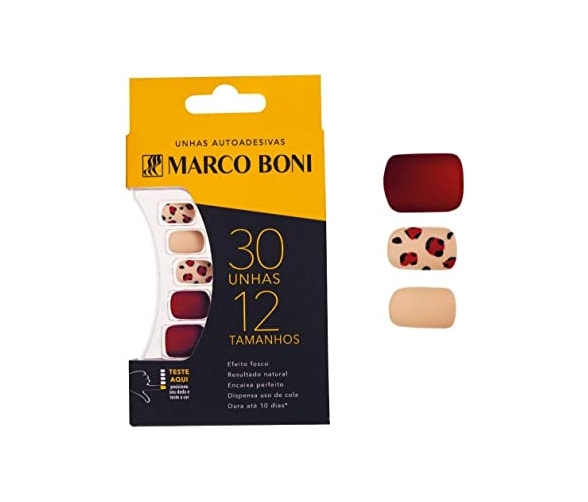 Unhas Posticas Marco Boni Vermelho Fosco com Cola Auto Adesiva R:1917