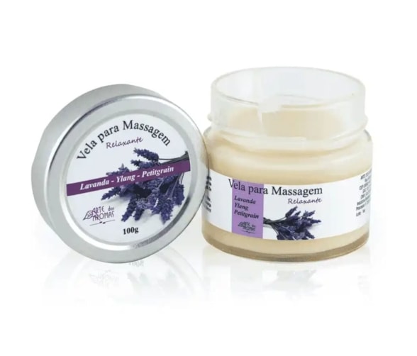A Vela Para Massagem Relaxante da Arte dos Aromas é natural, vegana e não contém parabenos ou corantes. A vela natural é um óleo sólido elaborado com óleos vegetais, óleos essenciais e cera de candelila, que ao aquecer se transforma em um fio de óleo quente ideal para a prática de massagens terapêuticas. Contém Óleos essenciais de lavanda, ylang ylang e petitgrain, que hidratam e nutrem a pele proporcionando o bem estar e o relaxamento da aromaterapia.