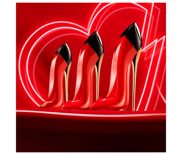 Frasco: O frasco stiletto de Very Good Girl impressiona com seu interior laqueado em vermelho vivo e salto dourado. Um verdadeiro ícone de paixão, glamour e sofisticação.