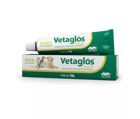 A Pomada Vetaglós é uma solução anti-infecciosa, epitelizante e cicatrizante, desenvolvida especialmente para o tratamento de feridas e lesões em cães e gatos. Sua fórmula única ajuda na regeneração da pele e acelera o processo de cicatrização de ferimentos, queimaduras, dermatites e outros danos à pele dos animais.