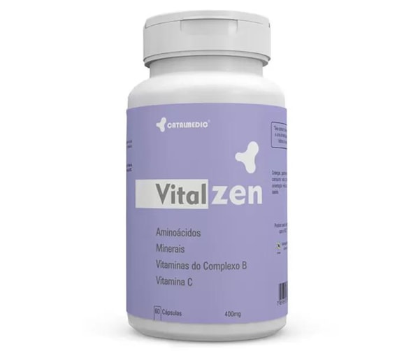 Totalmente isento de gorduras totais, gorduras saturadas, gorduras trans, sódio, glúten, lactose e corantes. Combinação natural sinérgica de aminoácidos, vitaminas e minerais, que auxiliam amanutenção da saúde celular, em especial dos neurônios. Fornece nutrientes essenciais às funções básicas celulares.A rotina moderna implica em constante estresse físico e emocioal, frequentemente nos privando de uma alimentação adequada, seja pela baixa qualidade dos alimentos ou pela falta de tempo. Vitalzen é composto por insumos de alta qualidade e especialmente formulado para manutenção do bem estar físico, mental e emocional. Modo de uso: Ingerir 4 cápsulas, uma vez ao dia, ou conforme orientação do médico ou profissional da saúde. COMPOSIÇÃO: L-Leucina, L-Valina, Bisglicinato de Magnésio, L-Isoleucina, L-Triptofano, L-Glutamina, Vitamina C, Vitamina B3, Selenito de sódio, Vitamina B6 e Vitamina B12.