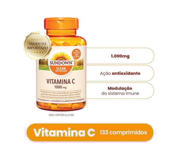 O Sun C da Sundown Naturals é um suplemento vitamínico a base de vitamina C, indicado para auxiliar no sistema imunológico, no processo de anemias carenciais, e processos pós-cirúrgicos e cicatrizantes, além de ter ação antioxidante que atua na produção dos glóbulos brancos.