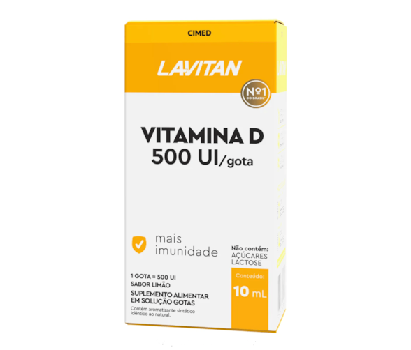 Vitamina D 500UI/gota é o suplemento alimentar de vitamina D3 em forma líquida. Possui 500 UI em cada gota e é indicado para todas as idades. A vitamina D auxilia no funcionamento do sistema imune, na formação de ossos e dentes e auxilia na absorção de cálcio e fósforo. Não contém açúcar nem lactose.