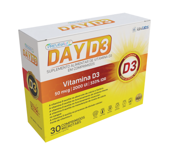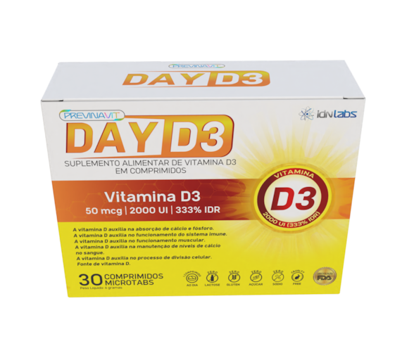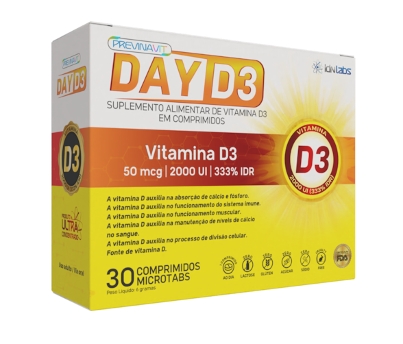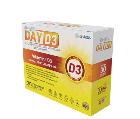 A Vitamina D3 2000UI – Day D3 é um suplemento alimentar desenvolvido para oferecer uma dose eficaz de 2000 UI de vitamina D3 por comprimido, nutriente essencial para o equilíbrio do organismo. Indispensável para a saúde dos ossos, músculos e sistema imunológico, a suplementação com vitamina D3 é recomendada especialmente em casos de baixa exposição solar ou necessidades nutricionais específicas.