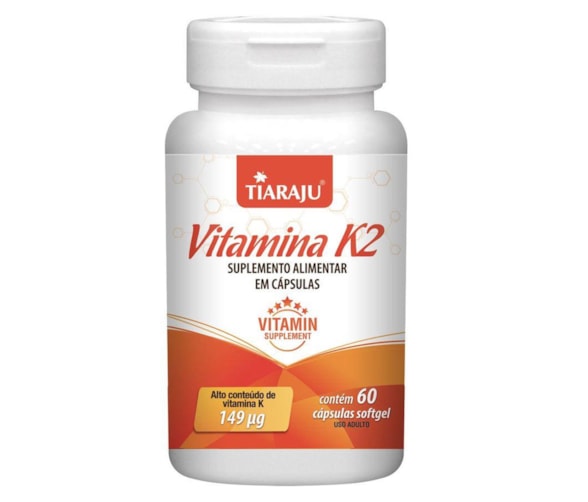 Vitamina K2 Tiaraju 149mgc c/60 Cápsulas - A vitamina K auxilia na manutenção dos ossos e na coagulação do sangue - Auxilia na manutenção dos ossos.
