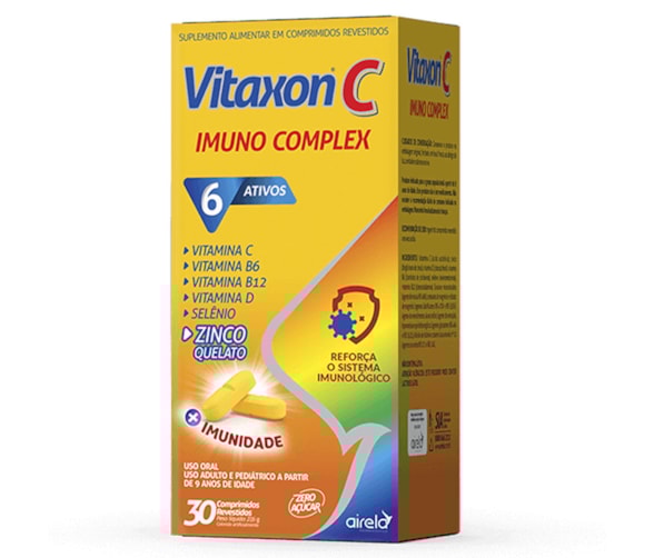 Vitaxon C Imuno Complex c/30 Comprimidos - Auxilia no sistema imune - Com vitamina C + B6 + B2 + D + selênio + zinco.