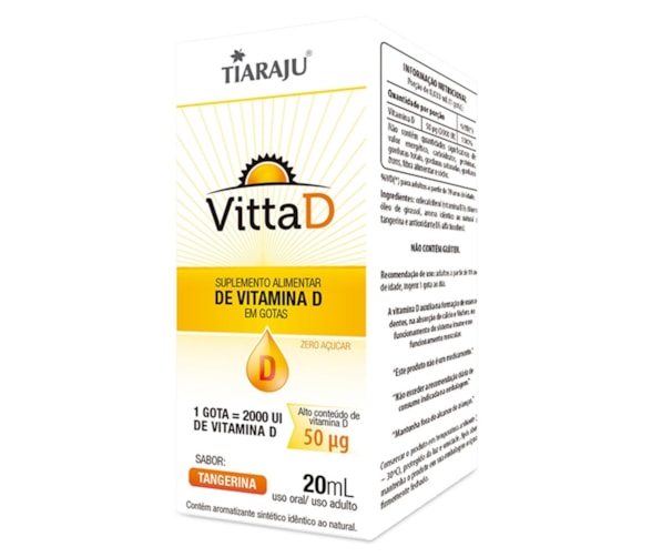 Vitta D 2000 UI - A vitamina D auxilia na formação de ossos e dentes, na absorção de cálcio e fósforo, no funcionamento do sistema imune e no funcionamento muscular - ZERO AÇÚCAR.