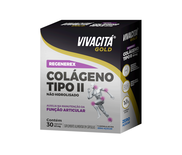 O Vivacitá Gold Cartilagem Regenerex, é composto por Colágeno tipo II, proteínas e vitaminas do complexo B,C e E. Reduz as dores inflamatórias das articulações e ajuda a aumentar a mobilidade das juntas.