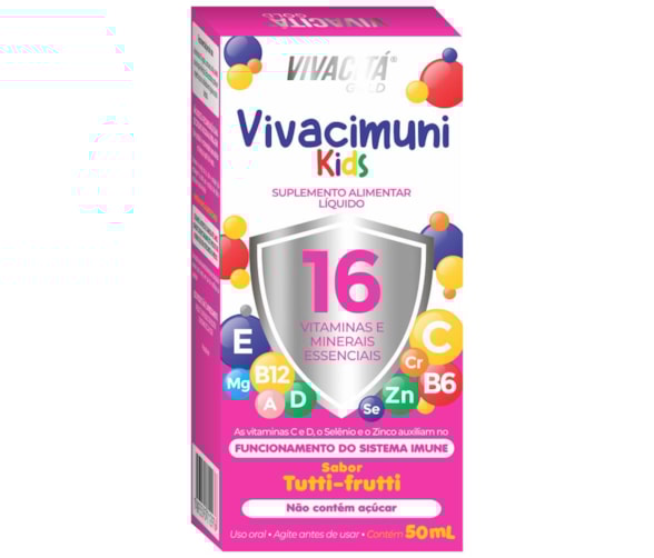 Vivacimuni kids é um suplemento alimentar, contem 16 vitaminas e minerais que auxilia no funcionamento do sistema imunológico.