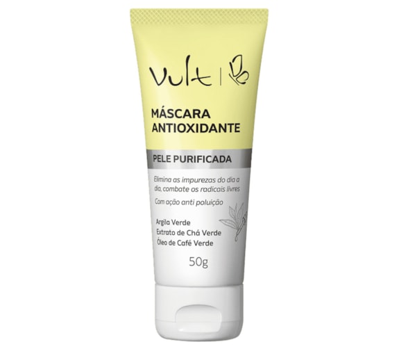 Vult Máscara Facial Antioxidante 50g - A Máscara Facial Antioxidante Vult Care acelera o processo de renovação celular da camada mais externa da pele - Possui efeito antipoluição, deixa a pele mais macia e iluminada e ainda melhora sua textura imediatamente - A máscara deixa a pele purificada, limpa, com aparência de descansada e elimina as impurezas do dia a dia - Renova e protege a pele contra efeitos nocivos dos radicais livres - Com efeito antioxidante e ação antipoluição, melhora imediata da textura da pele, deixando-a mais radiante e iluminada.