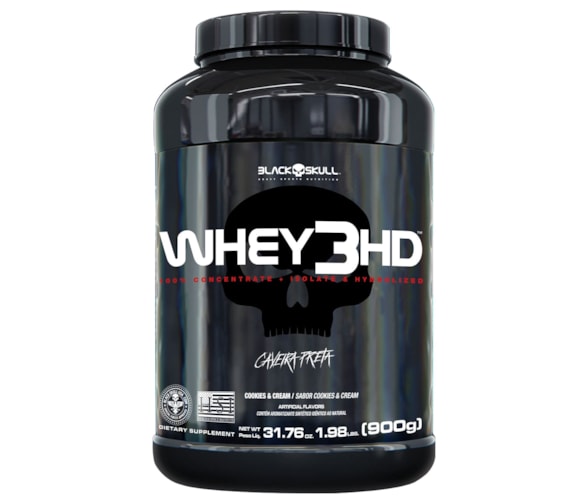 O WHEY 3HD BLACKSKULL USA™ apresenta um blend harmônico entre os três tipos de whey protein (WPC, WPI e WPH):WHEY PROTEIN CONCENTRADO (WPC): é obtido através do processo de ultra filtração do soro do leite. Nesse processo o soro passa por um filtro que segrega parte das moléculas menores como a lactose, gordura e resíduos, e concentra as maiores (proteínas). O WPC pode conter concentrações de proteína distintas, variando de 34% a 80%. O WPC contém gordura, lactose, carboidratos, fibras e minerais em sua composição.WHEY PROTEIN ISOLADO (WPI): por sua vez, o processo de extração da proteína do soro do leite que resulta no WPI é o de microfiltração, uma etapa posterior à de ultrafiltração. O processo de microfiltração remove os grandes glóbulos e moléculas de gordura, os quais são concentrados e separados dos demais componentes do soro de leite. Como consequência deste processo temos um produto com elevados teores proteicos (superiores a 90% de concentração) e baixos ou livres teores de lactose e gordura.WHEY PROTEIN HIDROLISADO (WPH): para chegar na proteína hidrolisada do soro do leite, o WPC ou WPI passam por um processo chamado hidrólise enzimática quebrando as moléculas de proteína em peptídeos menores, garantindo velocidade máxima de absorção.As proteínas são nutrientes chave para o período de recuperação quanto e ganho de massa muscular. As fontes possuem tempos de absorção diferentes mantendo os aminoácidos no sangue por tempo prolongado quando comparamos a um suplemento contendo apenas uma fonte de whey.São 32g de proteínas e 7,1g de BCAAs por dose que irão transformar seus objetivos em resultados.