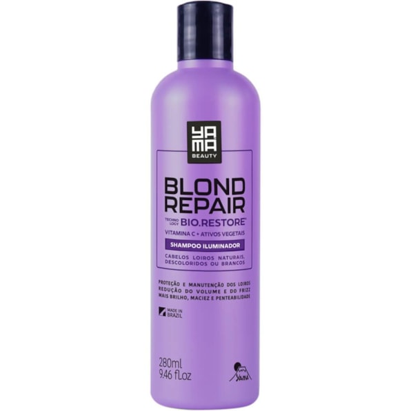 "Yamá Blond Repair - Shampoo Iluminador Cabelos Loiros O YAMÁ BLOND REPAIR SHAMPOO ILUMINADOR promove a limpeza ideal e inicia a linha de tratamento preparando os fios para uma melhor absorção da fórmula com óleos essenciais que combinam o BioRestore®, um exclusivo complexo de ativos que reforça a estrutura interna dos fios, reparando os danos causados por processos químicos, e a Vitamina C, um poderoso antioxidante. Para melhores resultados, faça o tratamento contínuo, utilizando a linha completa YAMÁ BLOND REPAIR.