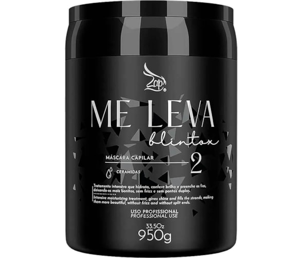 "Zap Me Leva Blintox - Btox Ceramidas O Me Leva Blintox é um sistema de tratamento para os fios exclusivo a base de ceramidas que atua promovendo brilho incomparável, restaura a beleza natural e fixa os elementos de reparação nas áreas danificadas. Mantém os cabelos tratados por mais tempo.