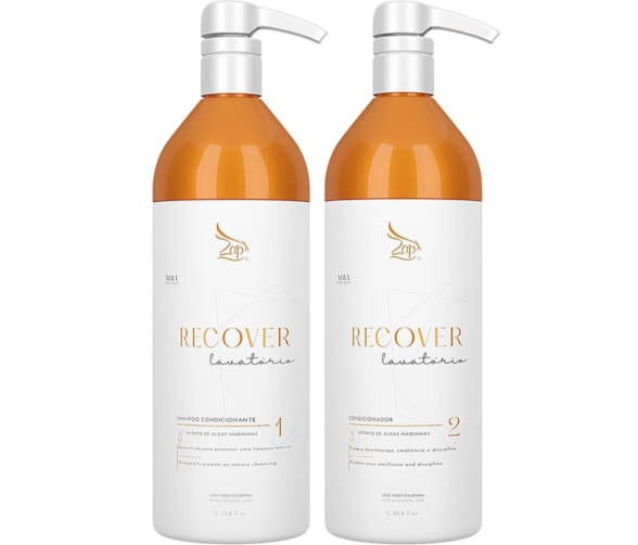 "Zap Recover Lavatório - Kit Uso Geral Salão Duo (2 Produtos) A linha ZAP Recover Lavatório foi elaborada para cuidar de todos os tipos de cabelos. Promovendo hidratação e protegendo contra pontas duplas, deixando os fios sedosos, hidratados e com brilho extremo. Devolve a vitalidade, fortalecendo e recuperando a maciez dos cabelos ressecados. O Shampoo foi desenvolvido com extratos de algas que desde o início ajudam a remover as células mortas do couro cabeludo e a equilibrar os níveis de oleosidade. O Condicionador é um tratamento para cuidar de todos os tipos de cabelos. Promovendo condicionamento e protegendo contra pontas duplas, deixando os fios sedosos, hidratados e com brilho extremo. Devolvendo a vitalidade, fortalecendo e recuperando a maciez dos cabelos ressecados.