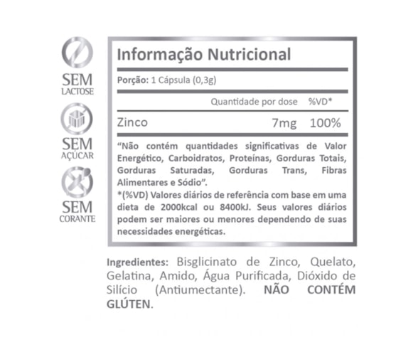 O Zinco Quelato 100% da IDR da Nature Healthy é um mineral importante que atua na síntese de proteínas e possui importante participação na recuperação muscular. Não contém Glúten.