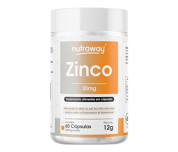 Zinco NutraWay 30mg c/60 Cápsulas - Funcionamento do Sistema Imune - Combate aos Radicais Livres -Melhora da visão - Processo de divisão celular - Manutenção dos ossos - Manutenção do cabelo, pele e unhas.